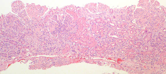 Se hace biopsia renal. Observe las imágenes.