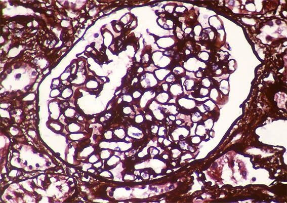 Figura 5. Plata-metenamina, X400. Paredes capilares normales.