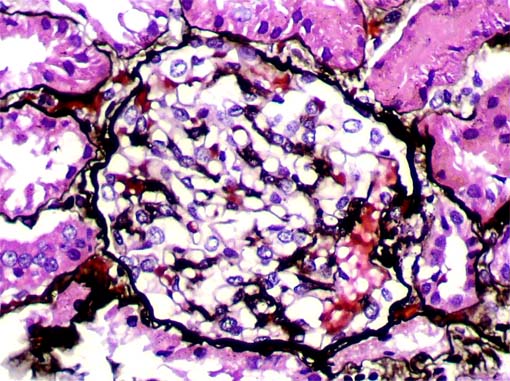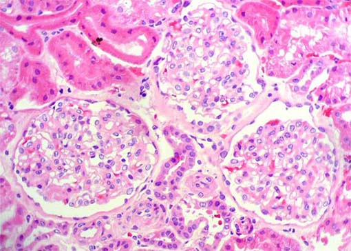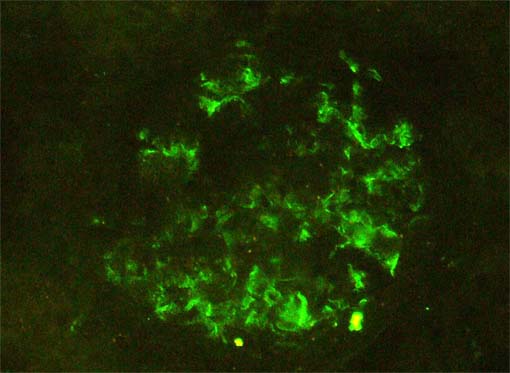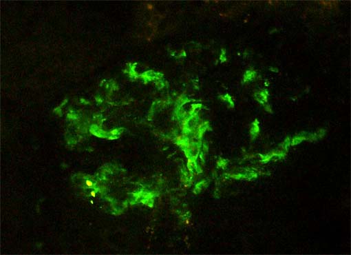 Inmunofluorescencia directa par IgA, IgG, C3 y C1q: Negativas.