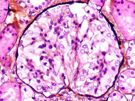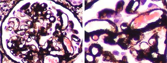 urinary volume. Proteinuria 12.1 g/24h, serum creatinine 2.0 mg/dL, microscopic