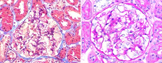 biopsy (post-transplantation). Left: Masson's trichrome, X400; right: