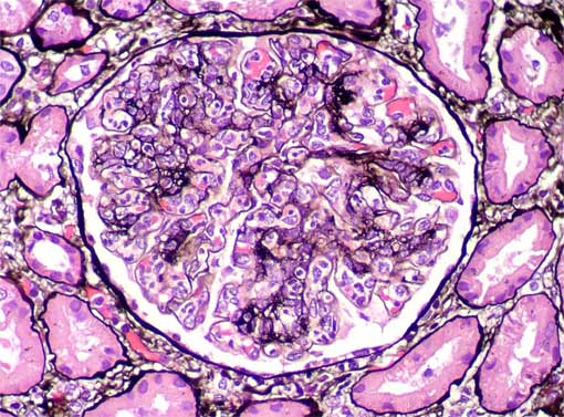 Methenamine-silver stain, X400.