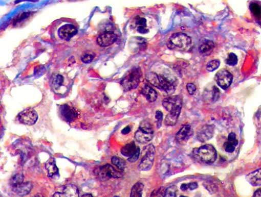 Masson's trichrome stain, X1,000.