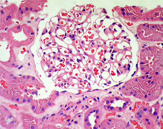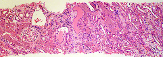 The kidney graft was biopsied. Look at the pictures.