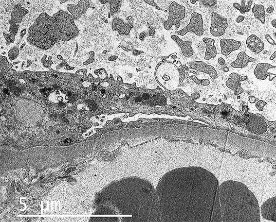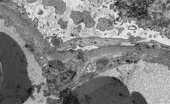 Figure 7. EM, original magnification, X4,500. How are the podocyte processes?.