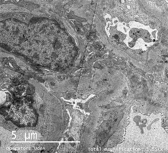 Figure 8. EM, original magnification x 4,500. Detail the podocyte cytoplasm.