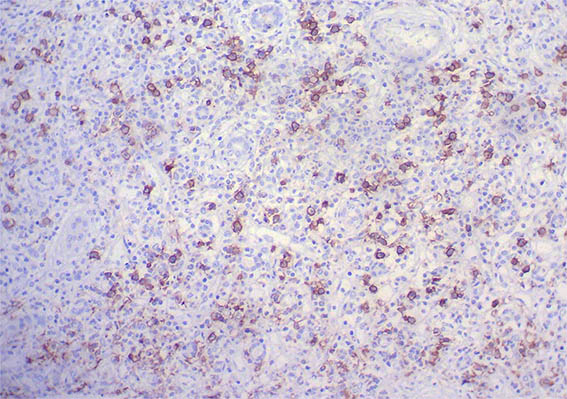 Figure 11. Immunohistochemistry for IgG4, X200.