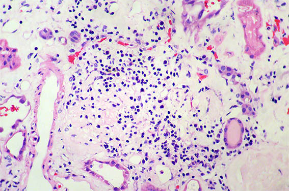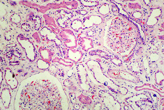 Figure 1. H&E, X100. Note the prominent tubulointerstitial involvement.