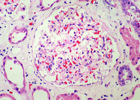 Figure 7. H&E, X400. Glomeruli with normal appearance.