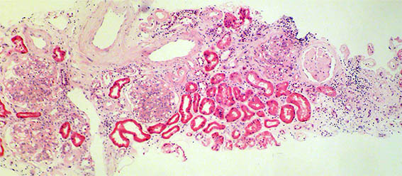 Figure 4. H&E, X400. Nodules suggestive of Kimmelstiel-Wilson.