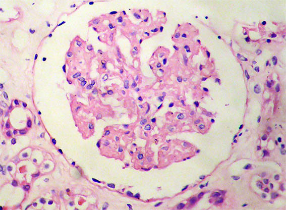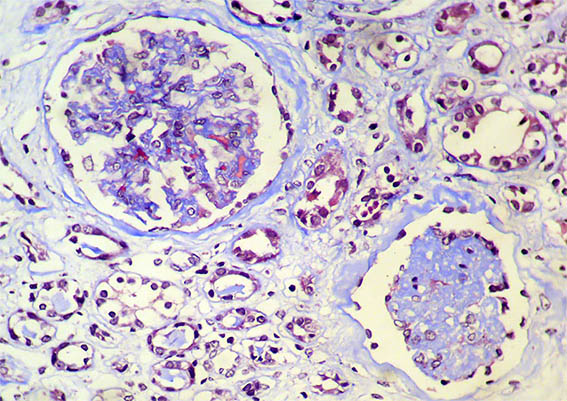 Se hace biopsia renal con impresión diagnóstica de lesión renal aguda. Ver las imágenes.