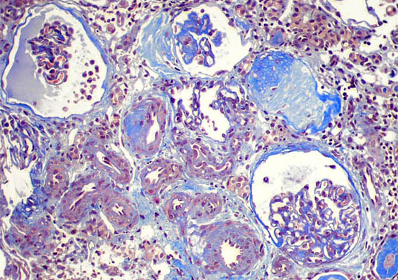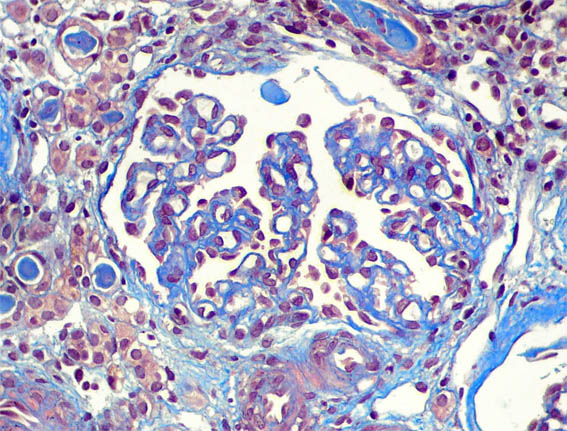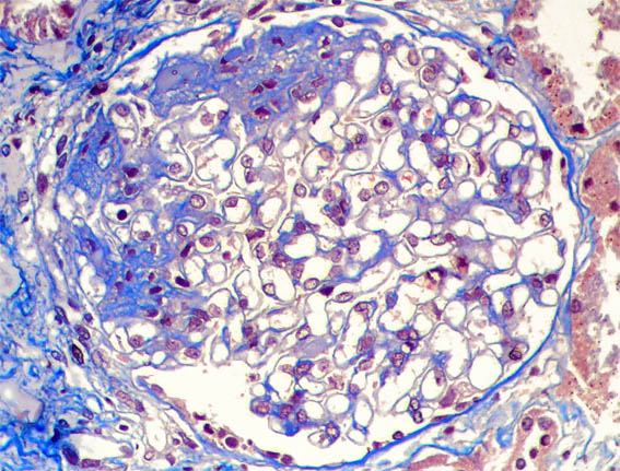 IgG, C3, C1q, kappa y lambda. Trazas mesangiales para IgM.
