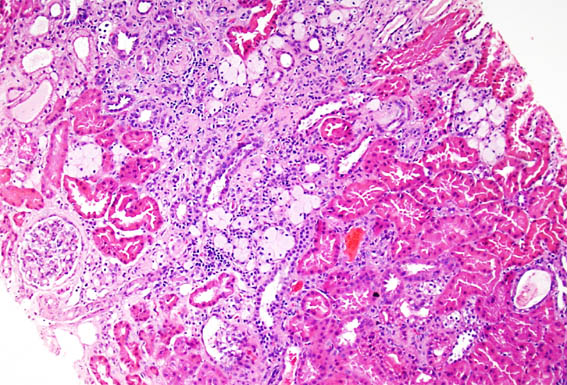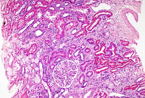 El paciente es un niño de 8 años de edad con historia de hematuria macroscópica intermitente desde hace 3 años, con múltiples episodios en el último año, algunos de ellos asociados a infecciones del tracto respiratorio superior. Los episodios de hematuria resuelven espontáneamente después de varios días. Las pruebas de laboratorio han mostrado siempre función renal normal, con creatininas alrededor de 0,5 mg/dL. Múltiples uroanálisis han mostrado variables grados de hematuria y proteinuria negativa o trazas (1+). Tiene ecografías renales normales y una pielografía intravenosa que no evidencia malformaciones renales o en las vías urinarias.
