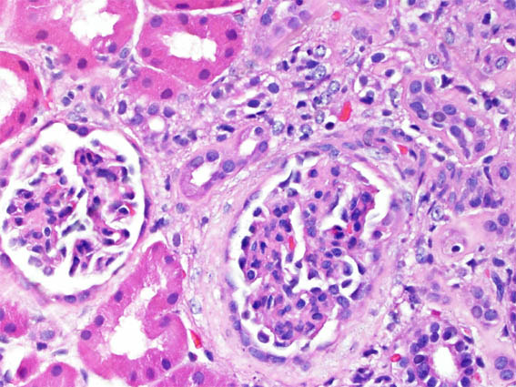 Inmunofluorescencia para IgA, IgG, IgM, C3 y C1q: Negativas.
