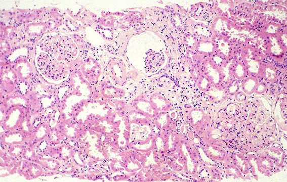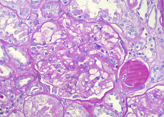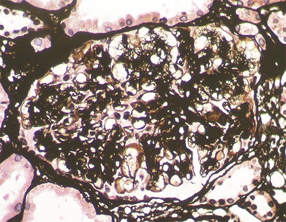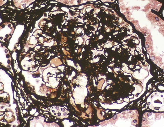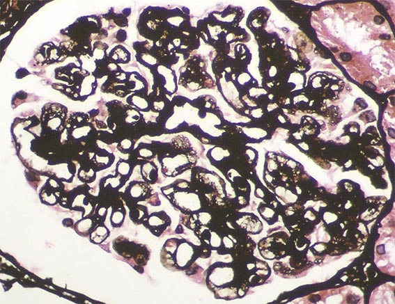 The patient is a 49-year-old man who was kidney transplanted nine years ago. Normal graft function, without proteinuria, until the 8th year, when he started to present mild proteinuria that gradually increased to 2.8 g/24 hours. Serum creatinine has also increased to 1.6 mg/dL.