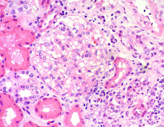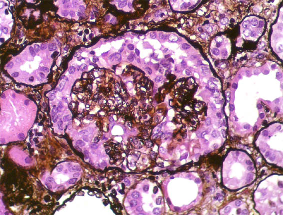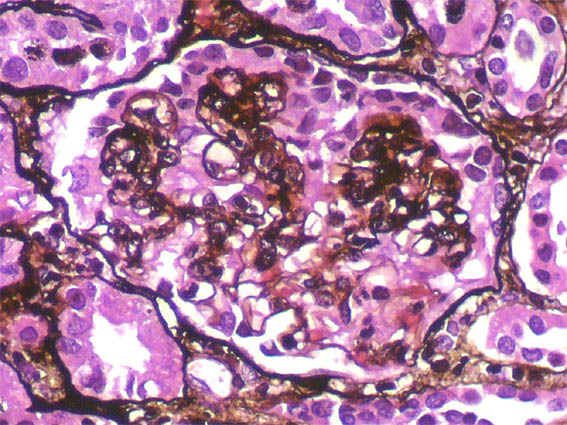 The patient is a 3-year-old girl with full nephrotic syndrome, steroid-resistant, symptoms of 3 months of evolution. Eight weeks of treatment with steroids, without response. Creatinine 0.9 mg/dL. Studies of autoimmunity and infections: Negative or normal. No pathological personal history. No known family history of kidney disease.