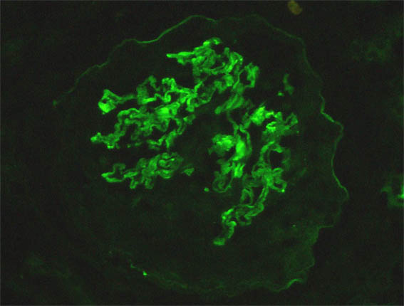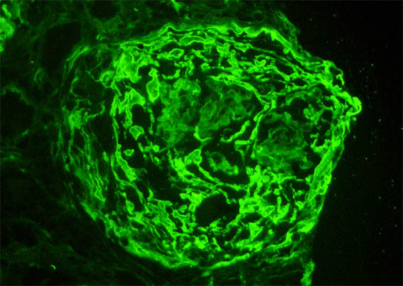 Figure 7. Direct immunofluorescence for IgG, X400.