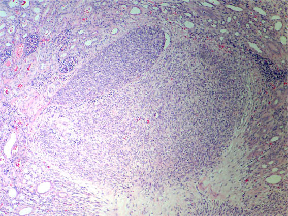 The patient is a 2-month-old boy in whom his mother palpates abdominal mass. Image studies demonstrate mass that compromises more than 50% of the left kidney.