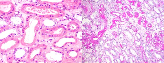 First post-transplantation biopsy. Left: H&E, X400; right: PAS, X400.