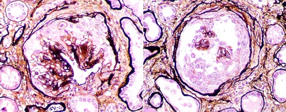 Second post-transplantation biopsy. Left and right: methenamine silver