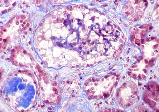 IgM, C3, C1q, kappa, lambda, and fibrinogen: Negative.
