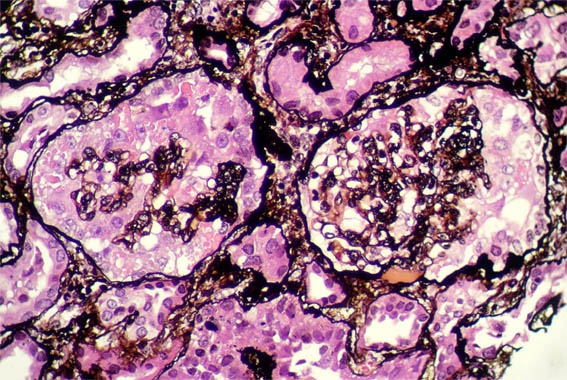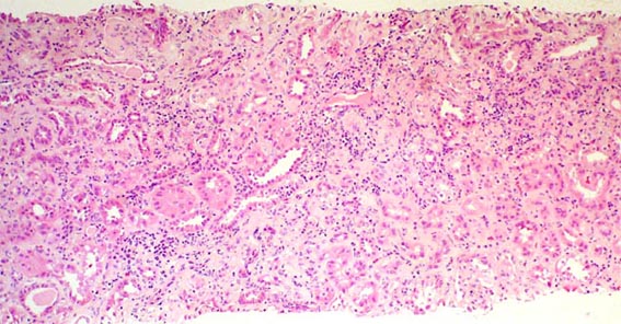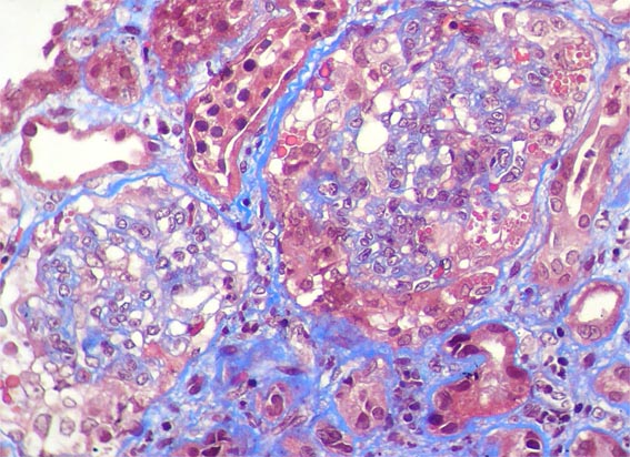 creatinine: 2.1 mg / dL, microscopic hematuria: 9-10 erythrocytes per