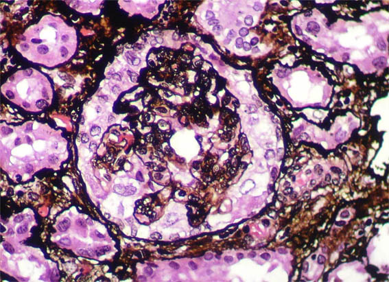 and C1q: Negative; IgM: unspecific mild focal and segmental immunostaining.