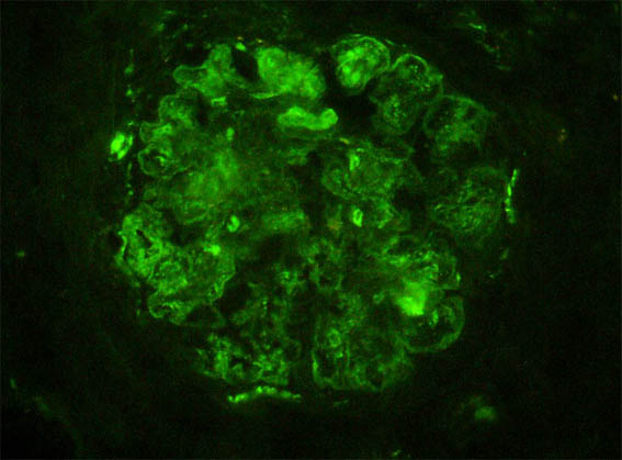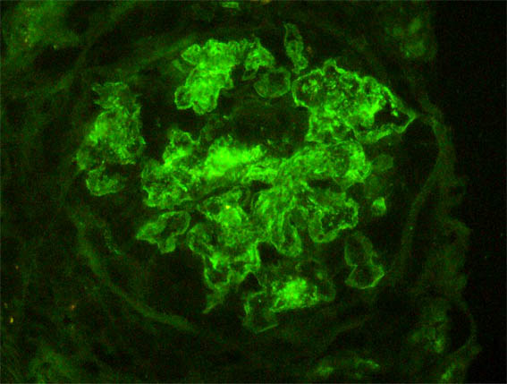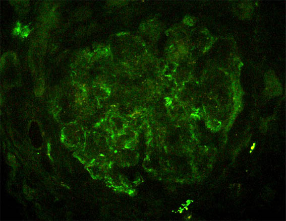 Immunofluorescence for IgA: Negative.