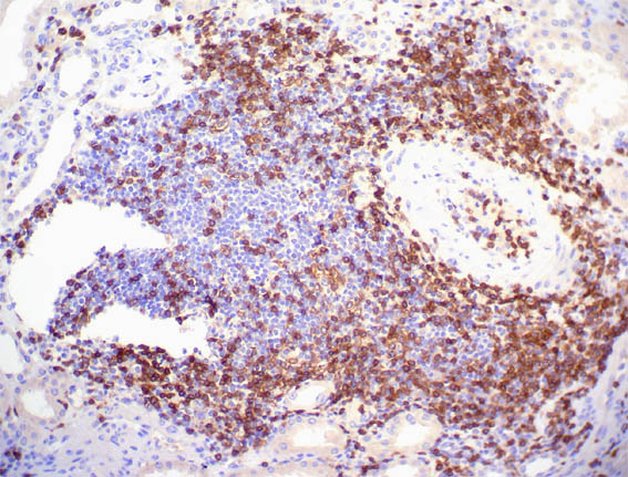 Figure 9. Immunohistochemistry for CD3, X400.